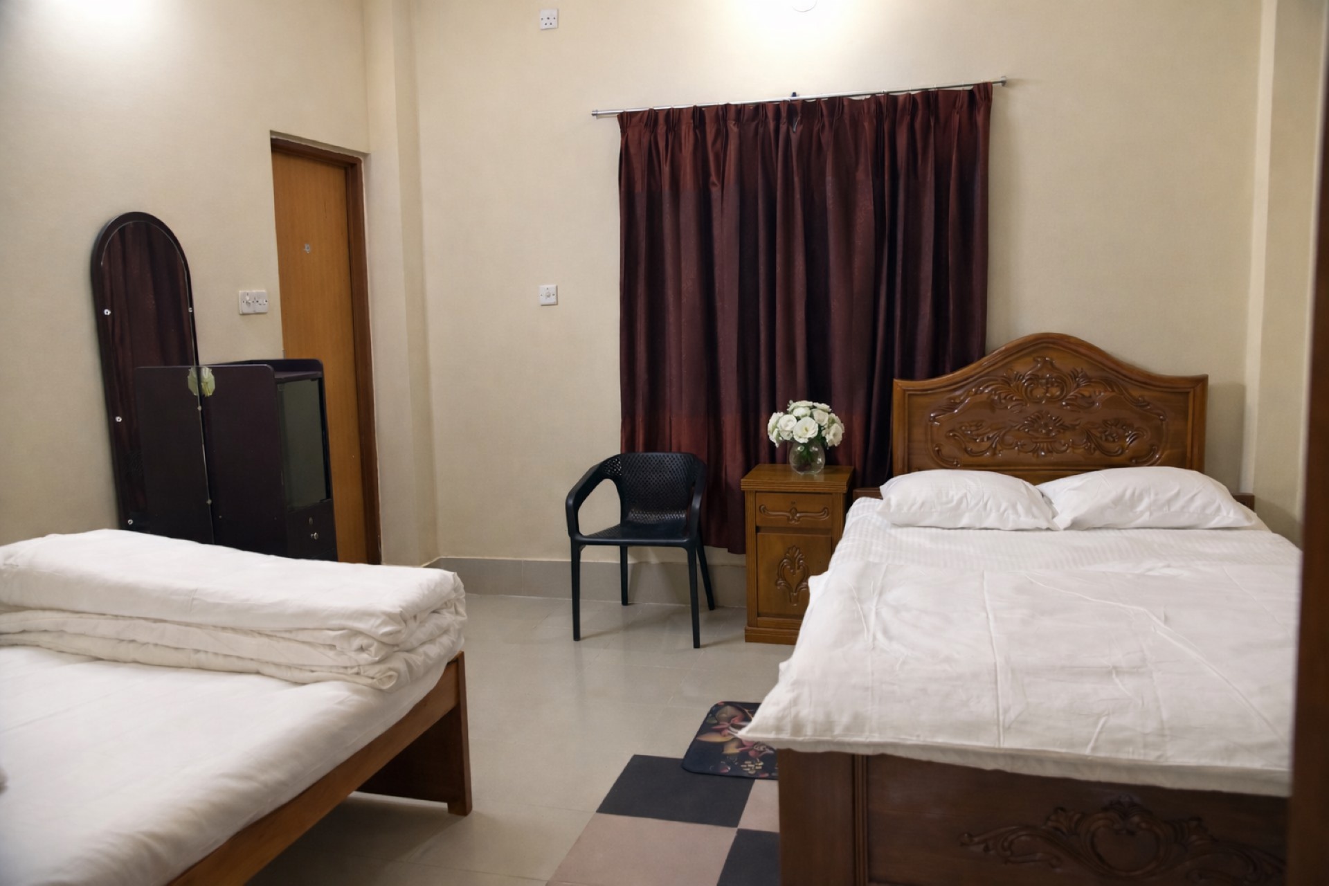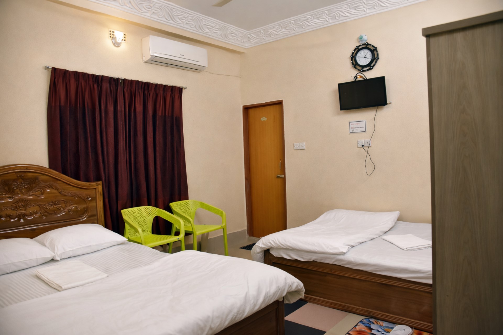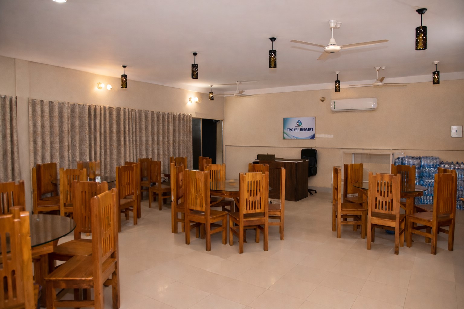 Our elegant double room at Troyee Resort offers the perfect blend of comfort and tranquility. Designed for relaxation, the room features a luxurious double bed with high-quality linens, ensuring a restful night’s sleep. The room is furnished with a bedside table, a soft reading light, and a spacious wardrobe to keep your belongings neatly organized.